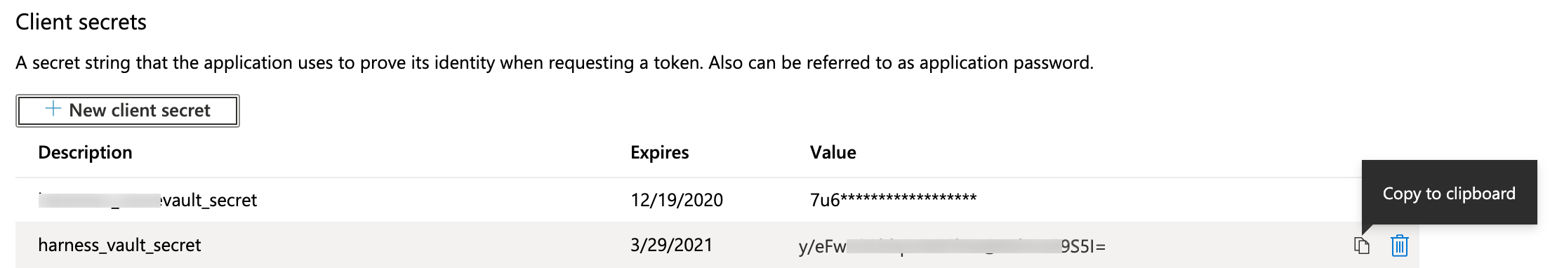 - Find your new key in the Client secrets section, and copy its value to your clipboard.