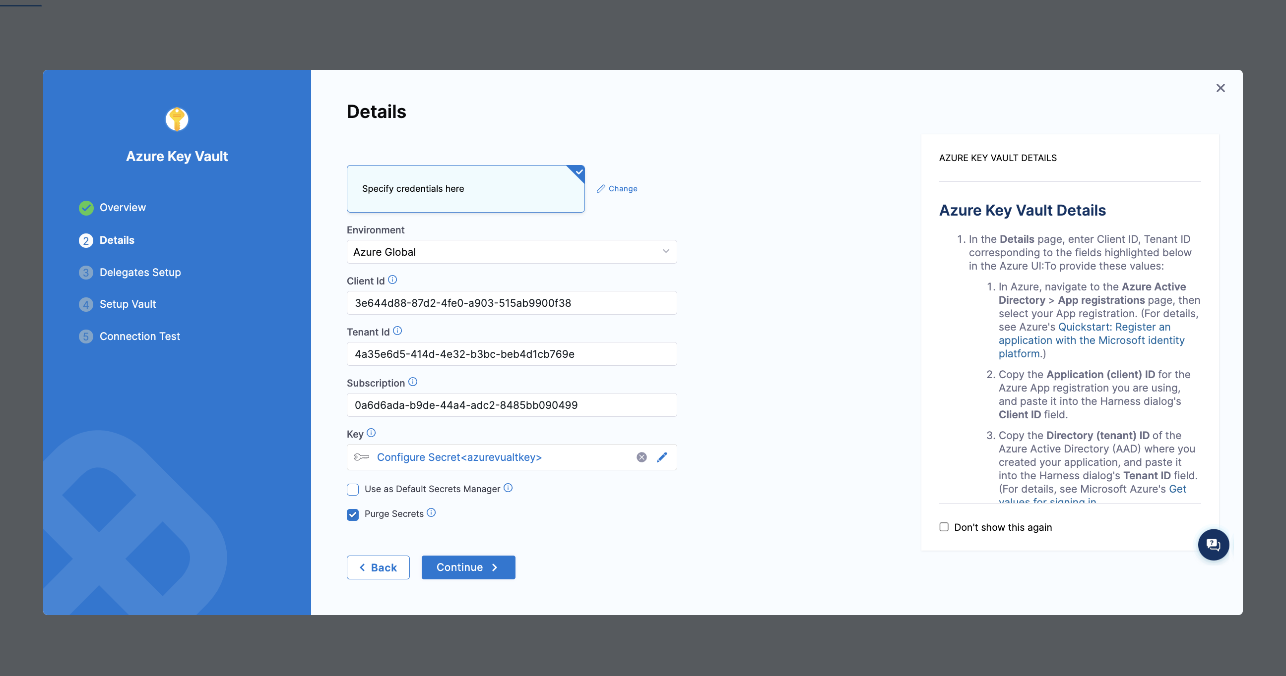 - In Secrets Manager, select the Harness Azure Key Vault connector to use.