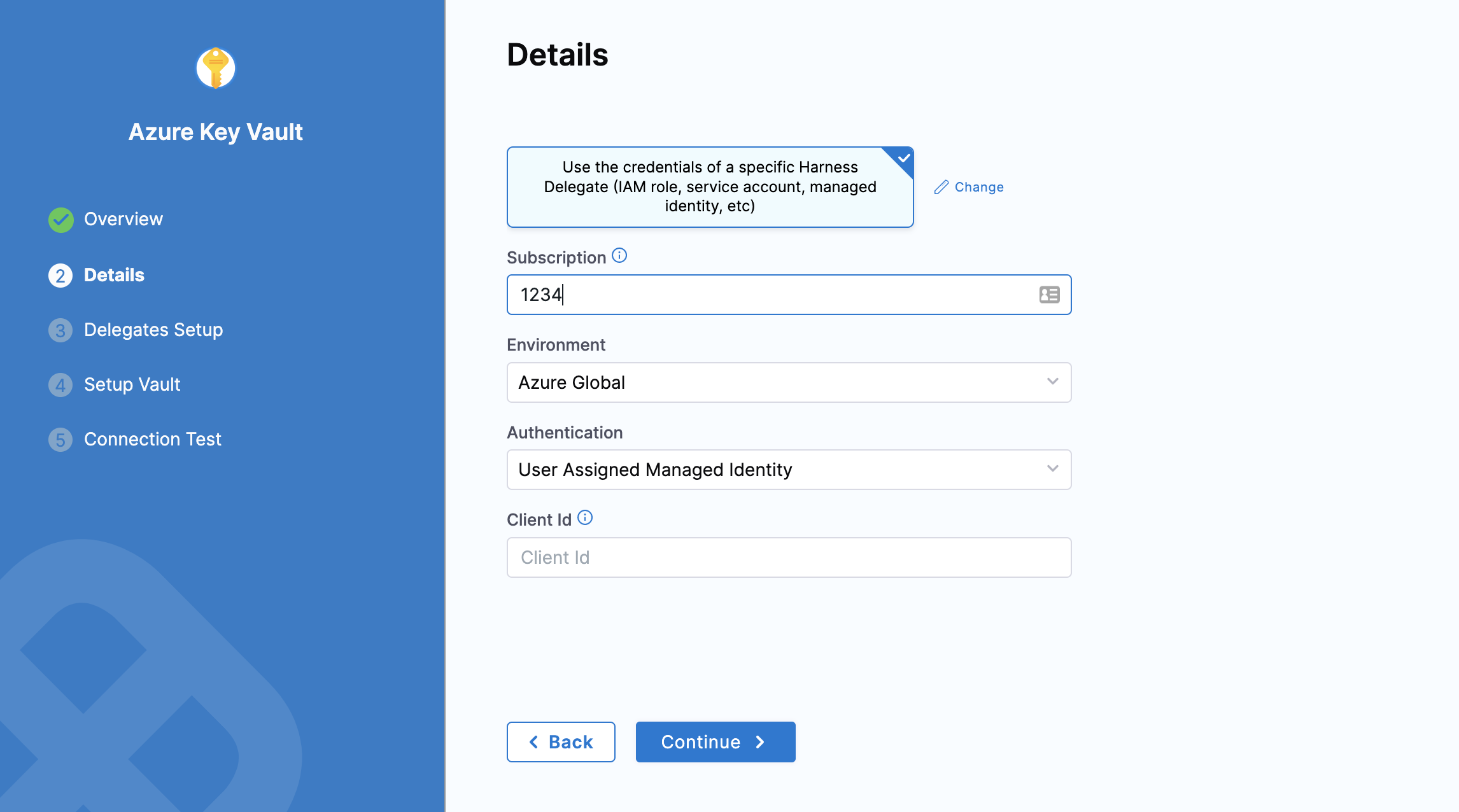 User Assigned Managed Identity: If you select this, you need to provide the Application (client) Id in Client Id.