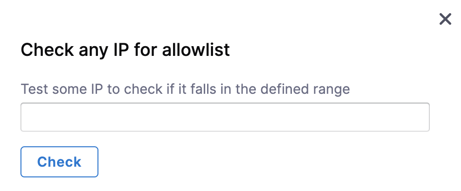 Select the three-dot menu to edit or delete an allowlist. Select Check any IP for allowlist to check if an IP address is allowed.  Enter an IP address or a range of IP addresses and select Check. importantMake sure that your current IP address is allowlisted in all enabled configurations, otherwise, they may get locked out.