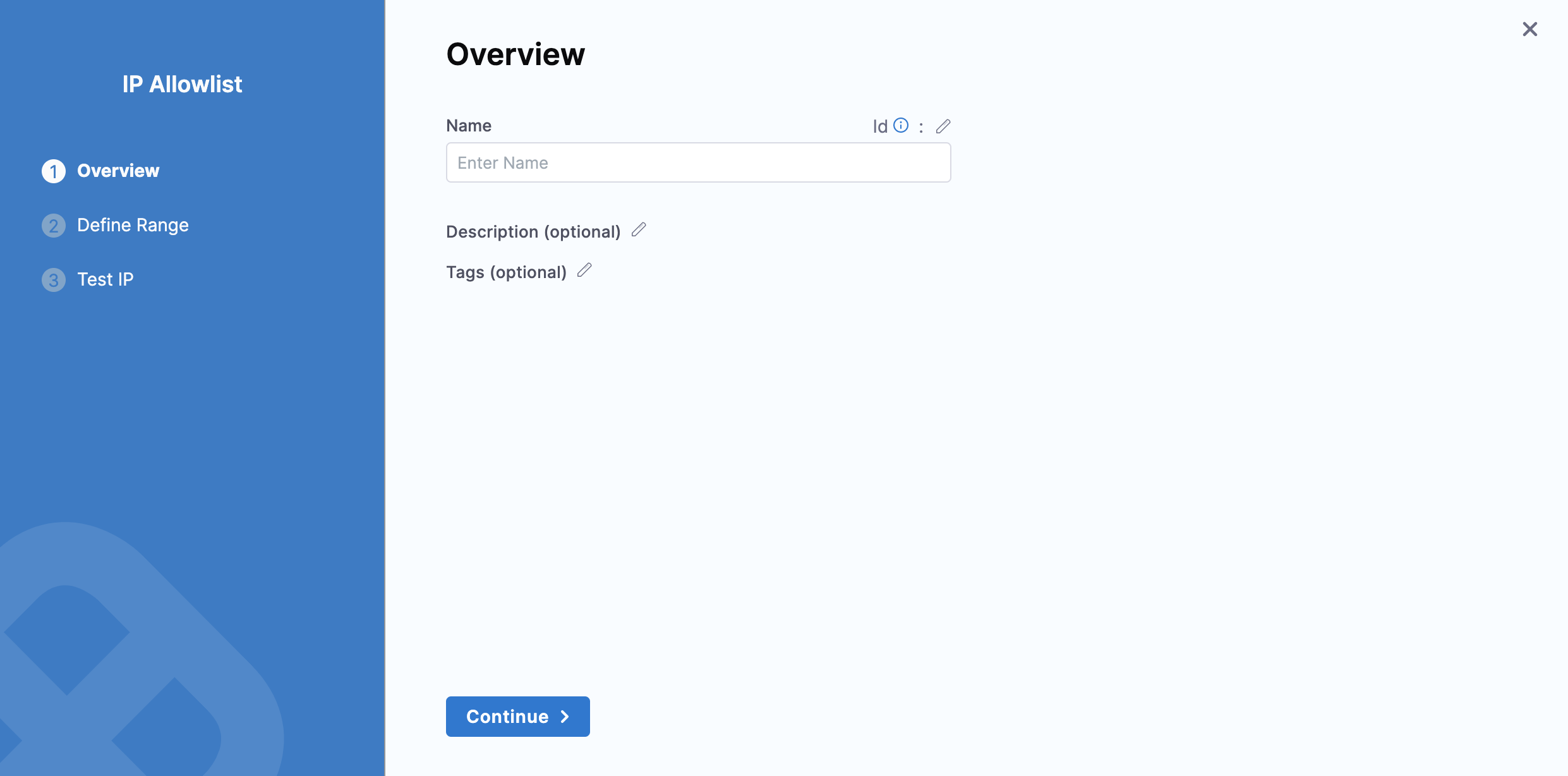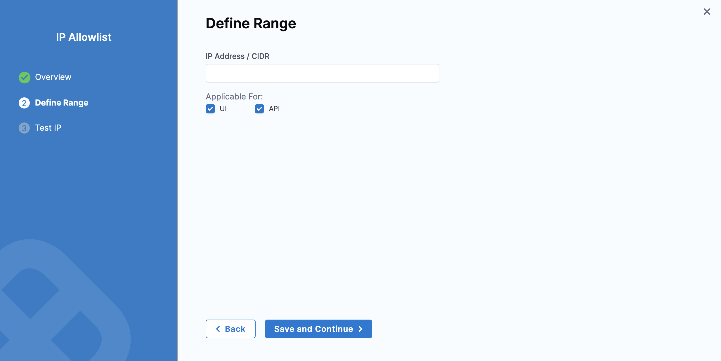 Select Add IP Addresses. The IP Allowlist settings appear.