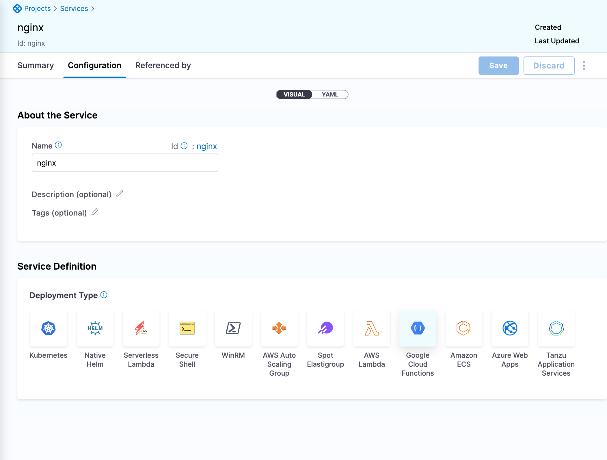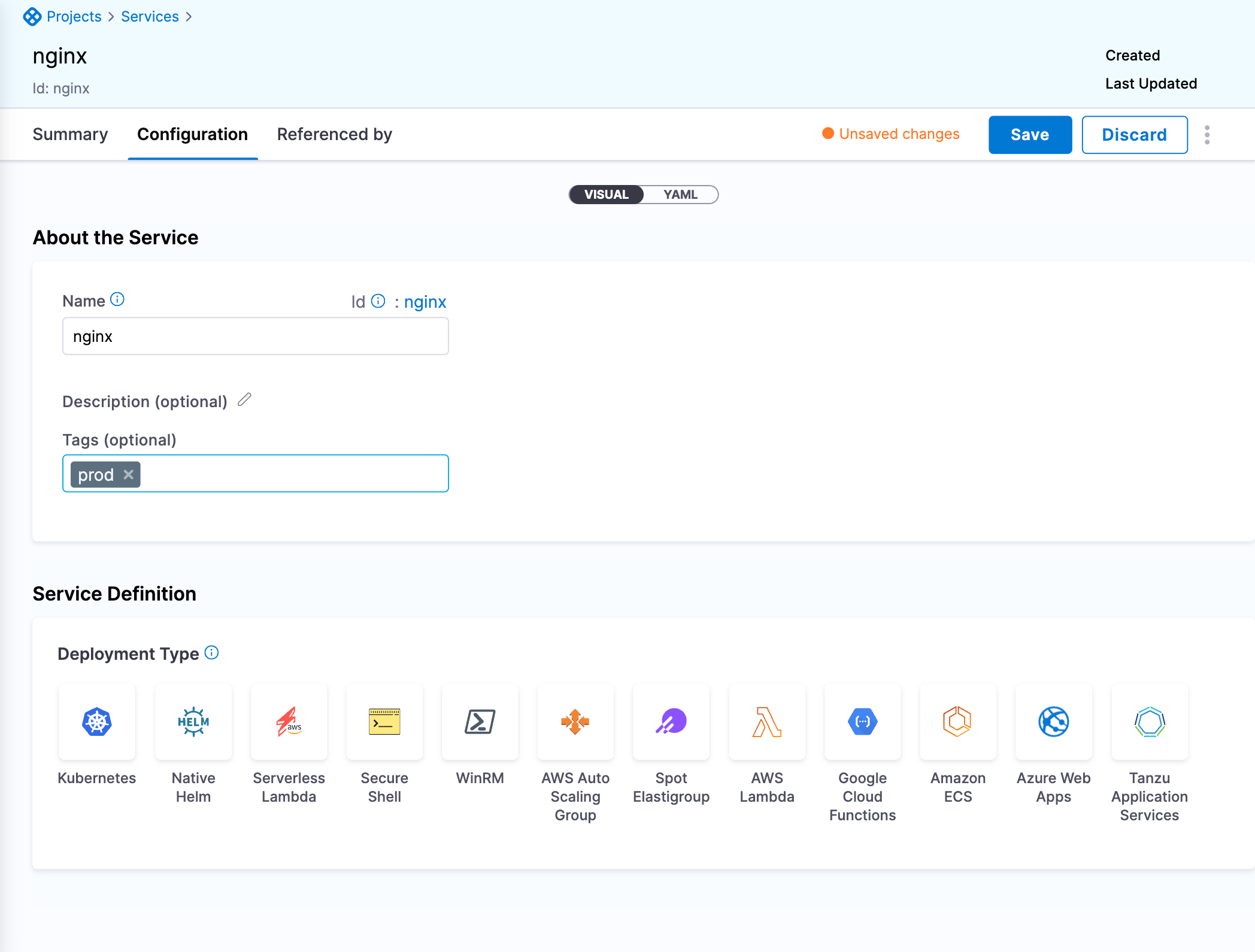 In Harness, go the application or component to display its Overview card: Application Overview, Environment Overview, Workflow Overview, Services etc.