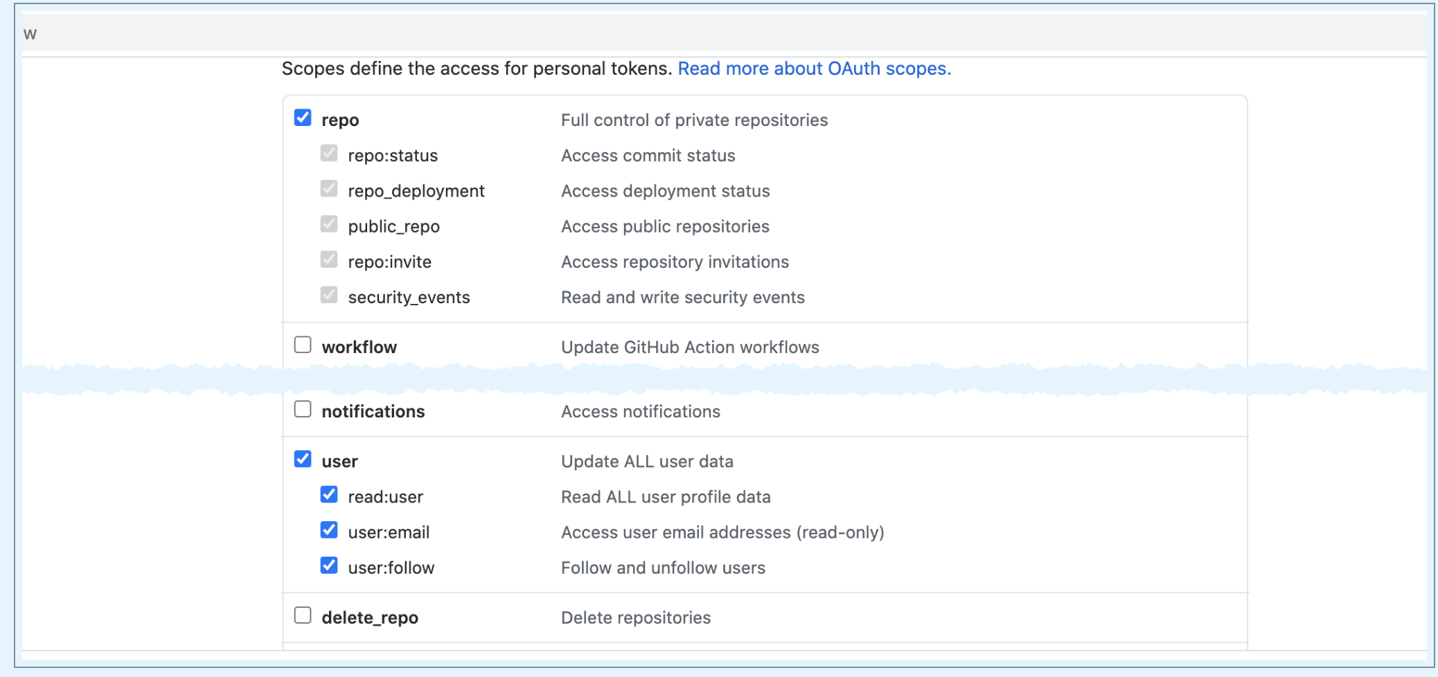The Git connector must use the Enable API access option and Username and Token authentication.