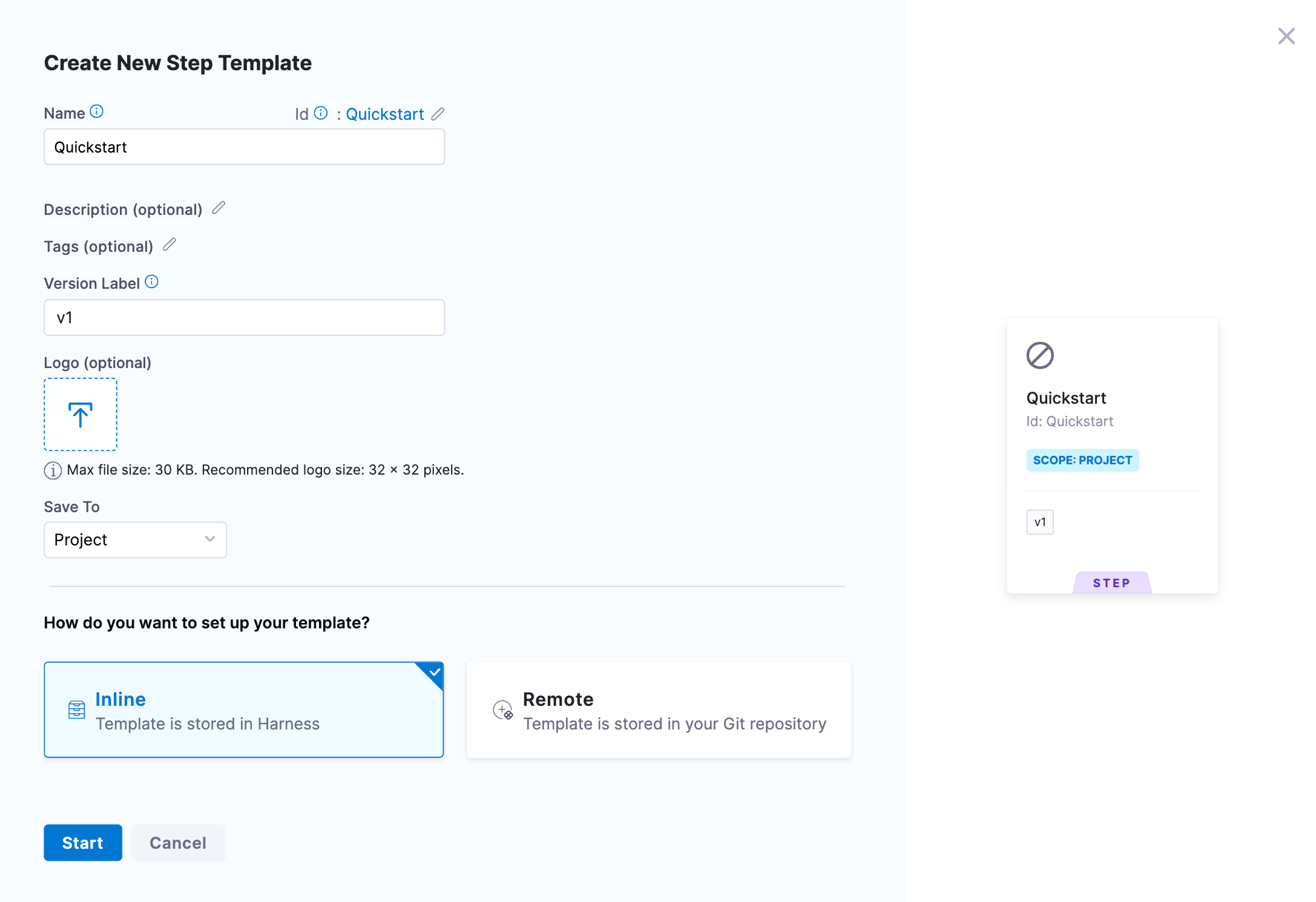 You can create a step template from your account, org, or project. This topic explains the steps to create a step template from the project scope.