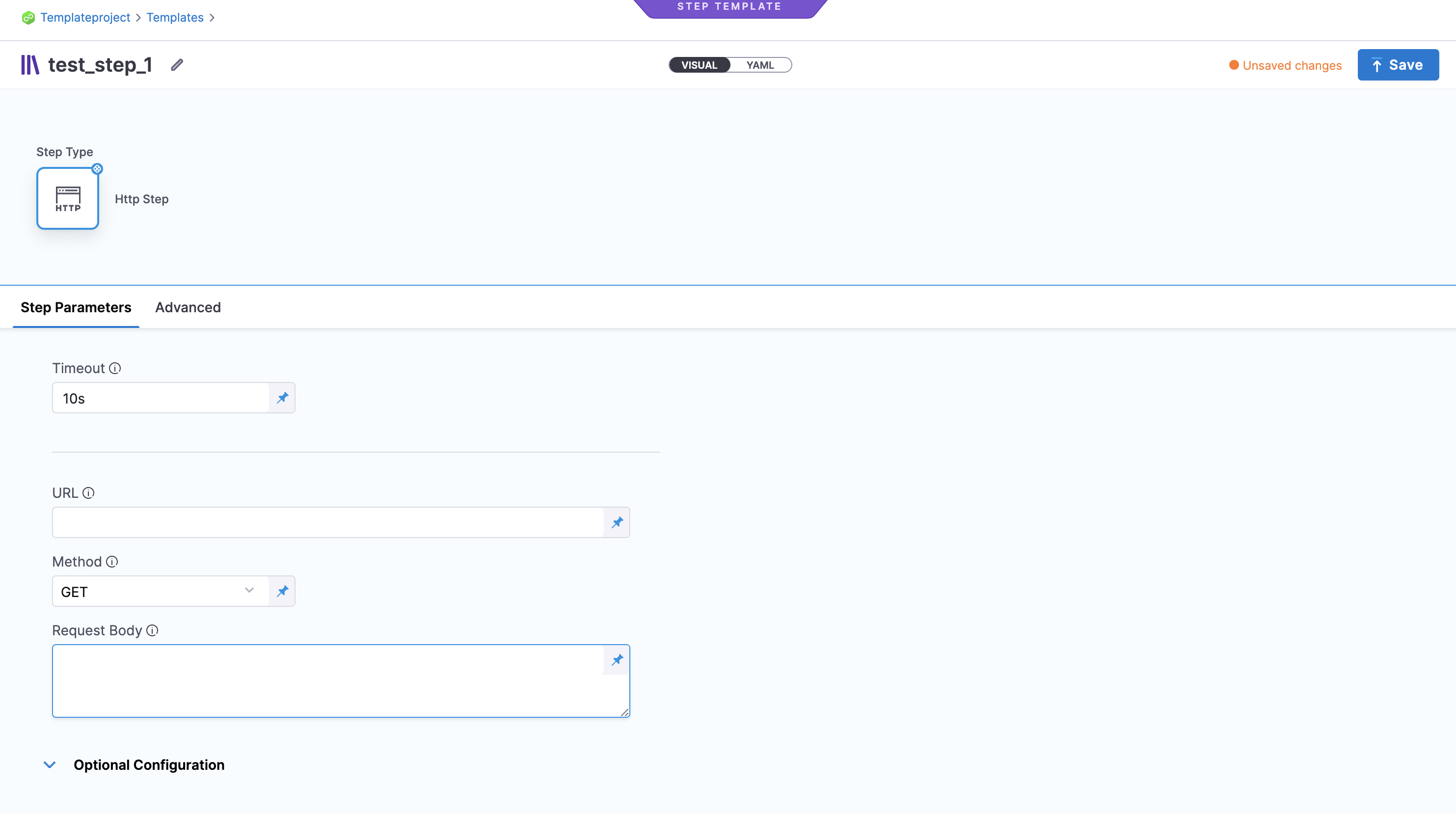 - Create an HTTP step template.