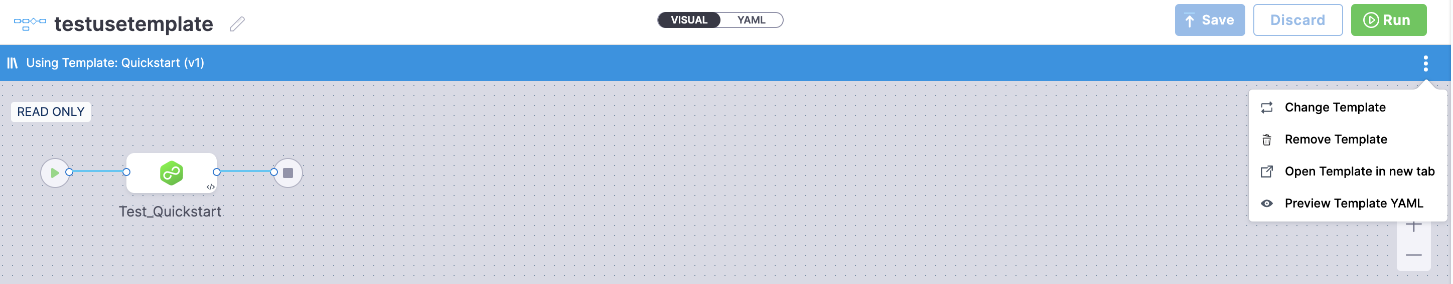 When you create or edit a pipeline in Pipeline Studio by selecting a template, the Advanced tab now clearly separates template-level settings (read-only) from pipeline-specific metadata (editable):