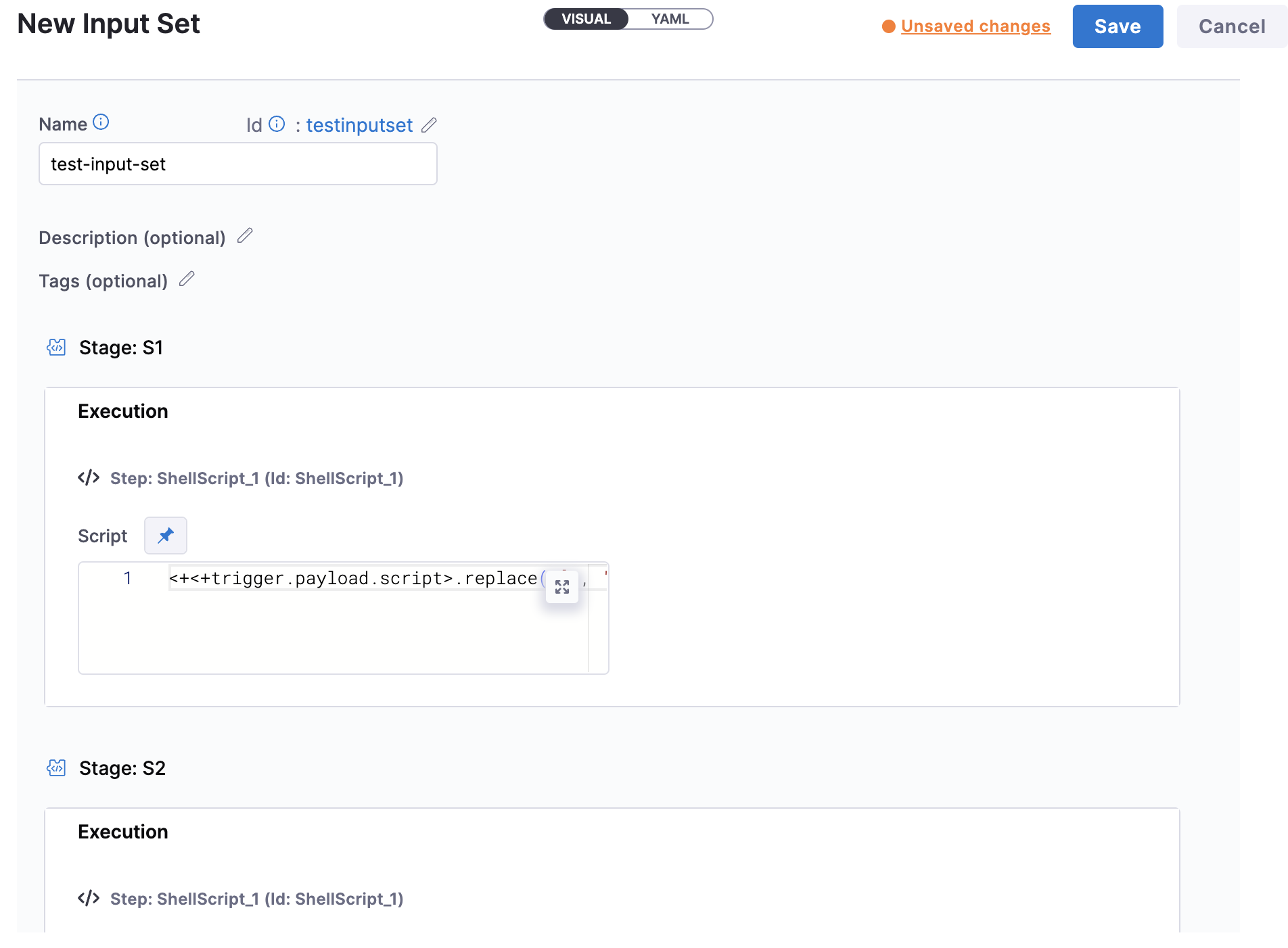 - If the value provided for the input set YAML reference is an expression, Harness checks for the key input_set_refsin the trigger payload and uses the value provided there.