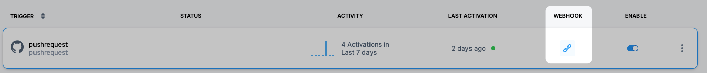 In Harness, obtain the trigger webhook by selecting the Webhook/Link icon in the list of triggers.