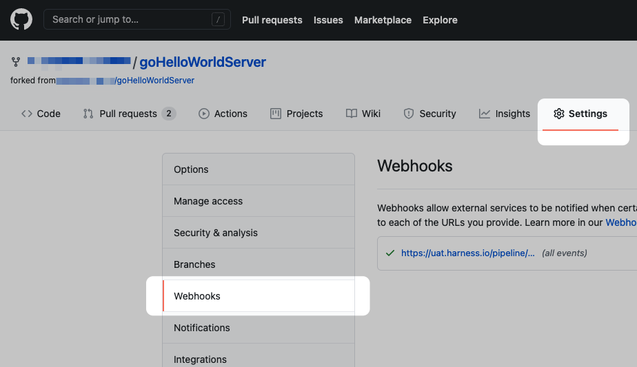 For all Git providers supported by Harness, a webhook is automatically created in the repo. Usually, the webhook is automatically registered. If automatic registration fails, you can manually register the webhook.