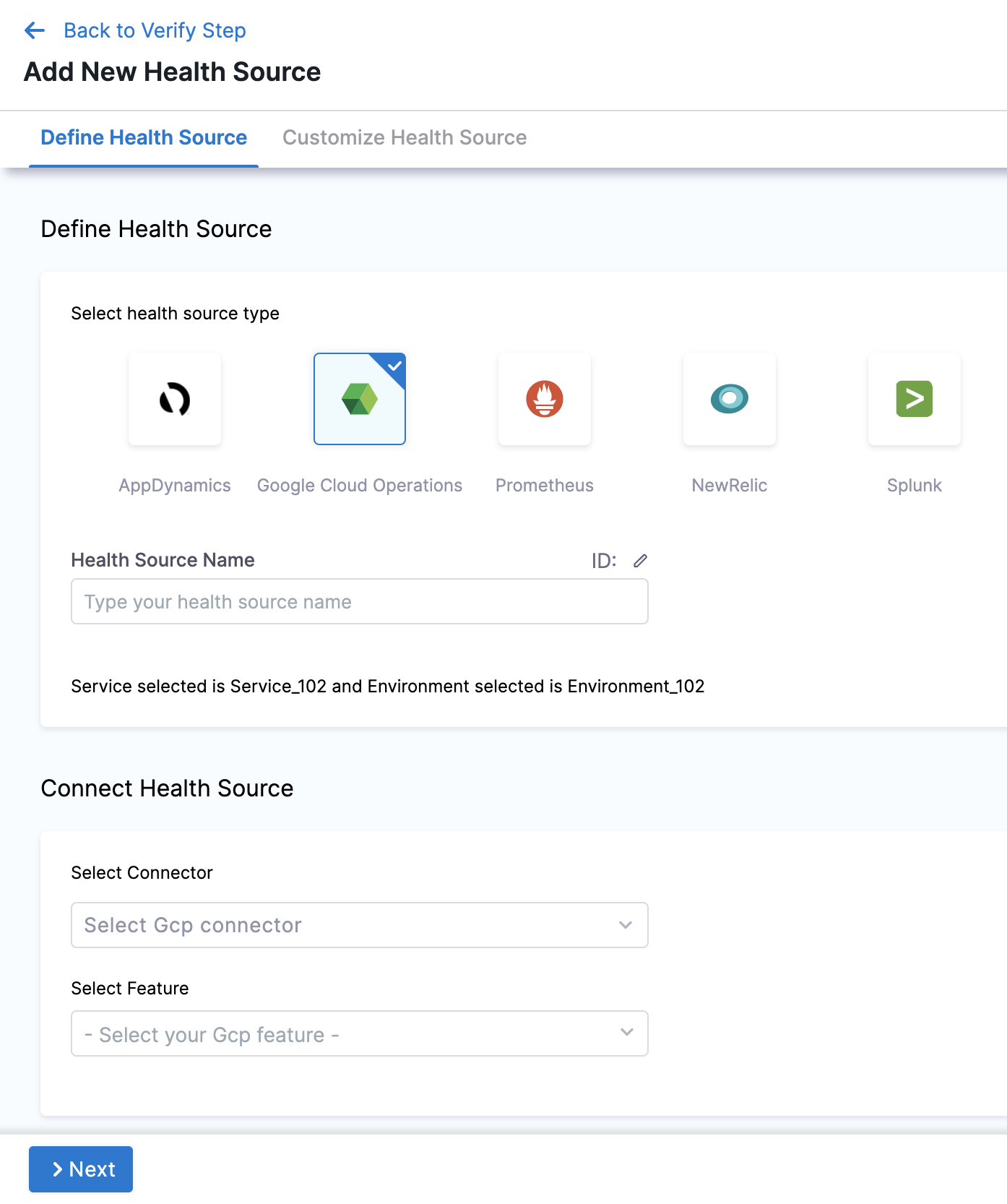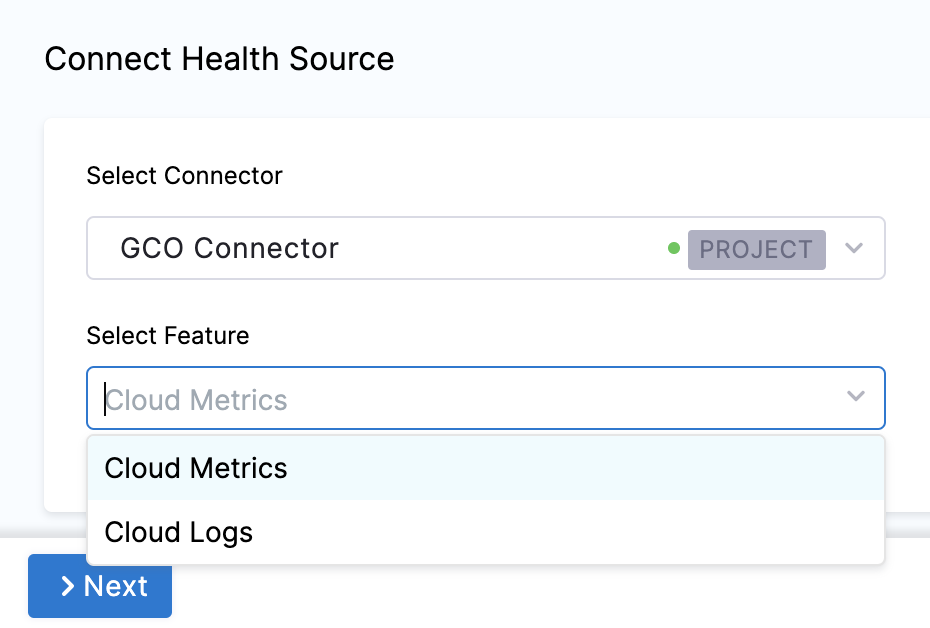 Select Cloud Logs and click Next. The Customize Health Source settings appear.