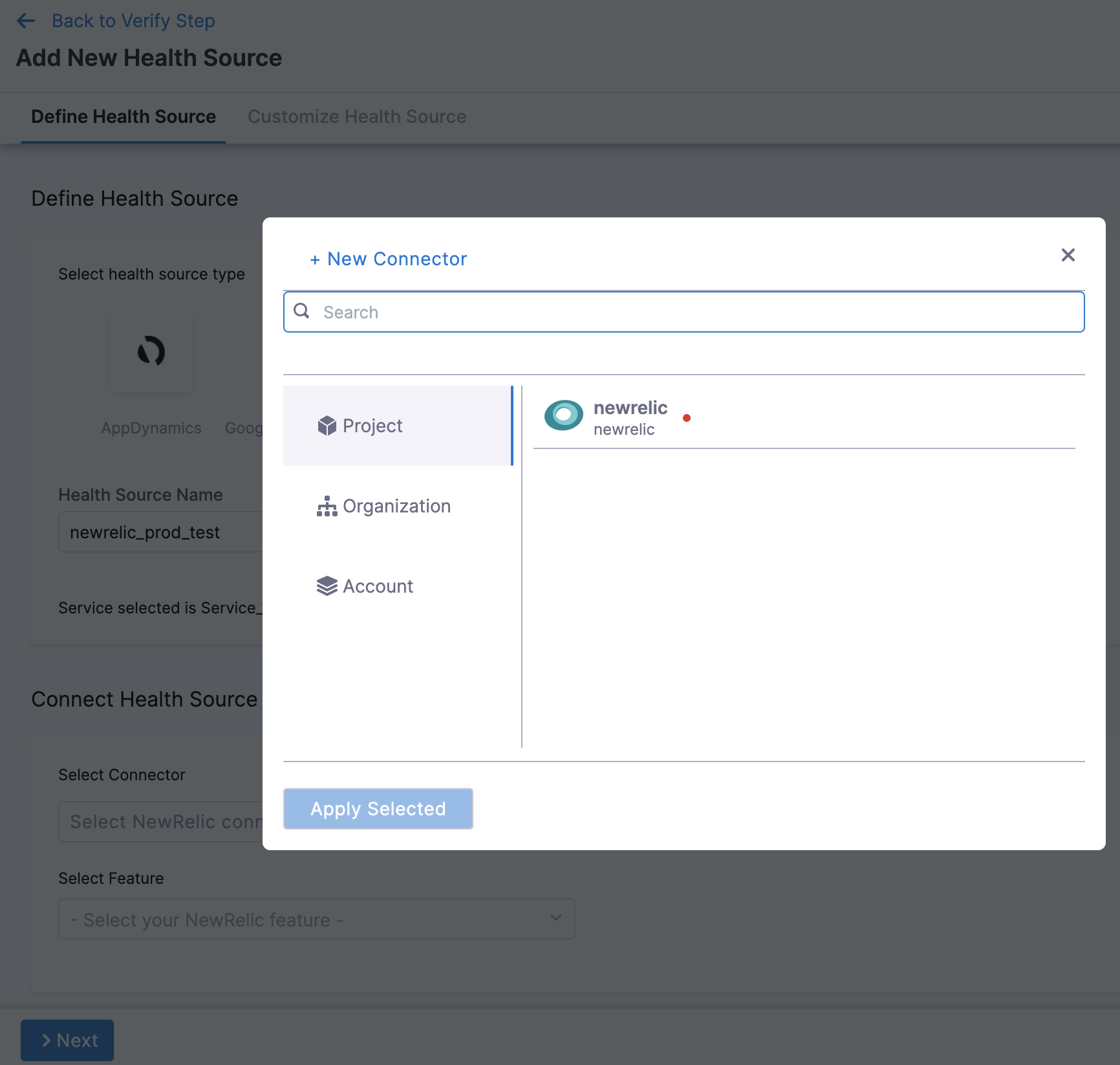 Go to the Service tab, and under Define Your Sources, select + Add New Health Source.