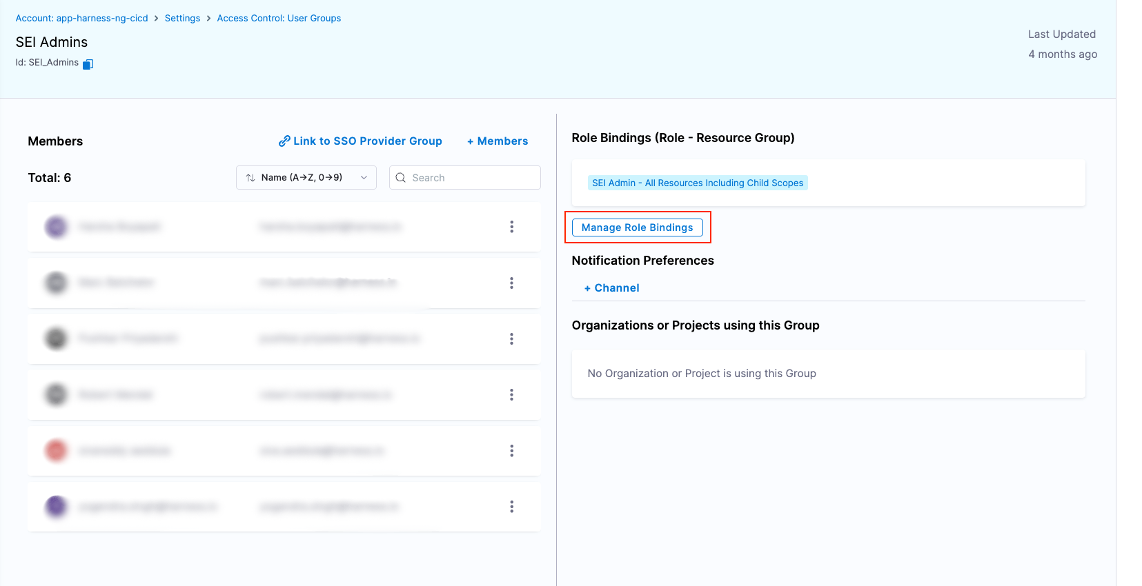 • In Harness, go to Account Settings, and search for the user or user group where you want to assign the permissions.