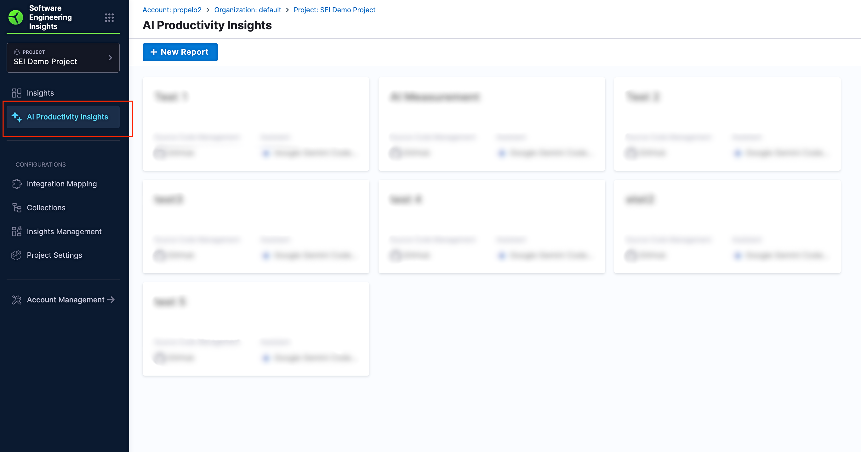 • Go to the AI Productivity Insights section in the left menu of your Harness project.