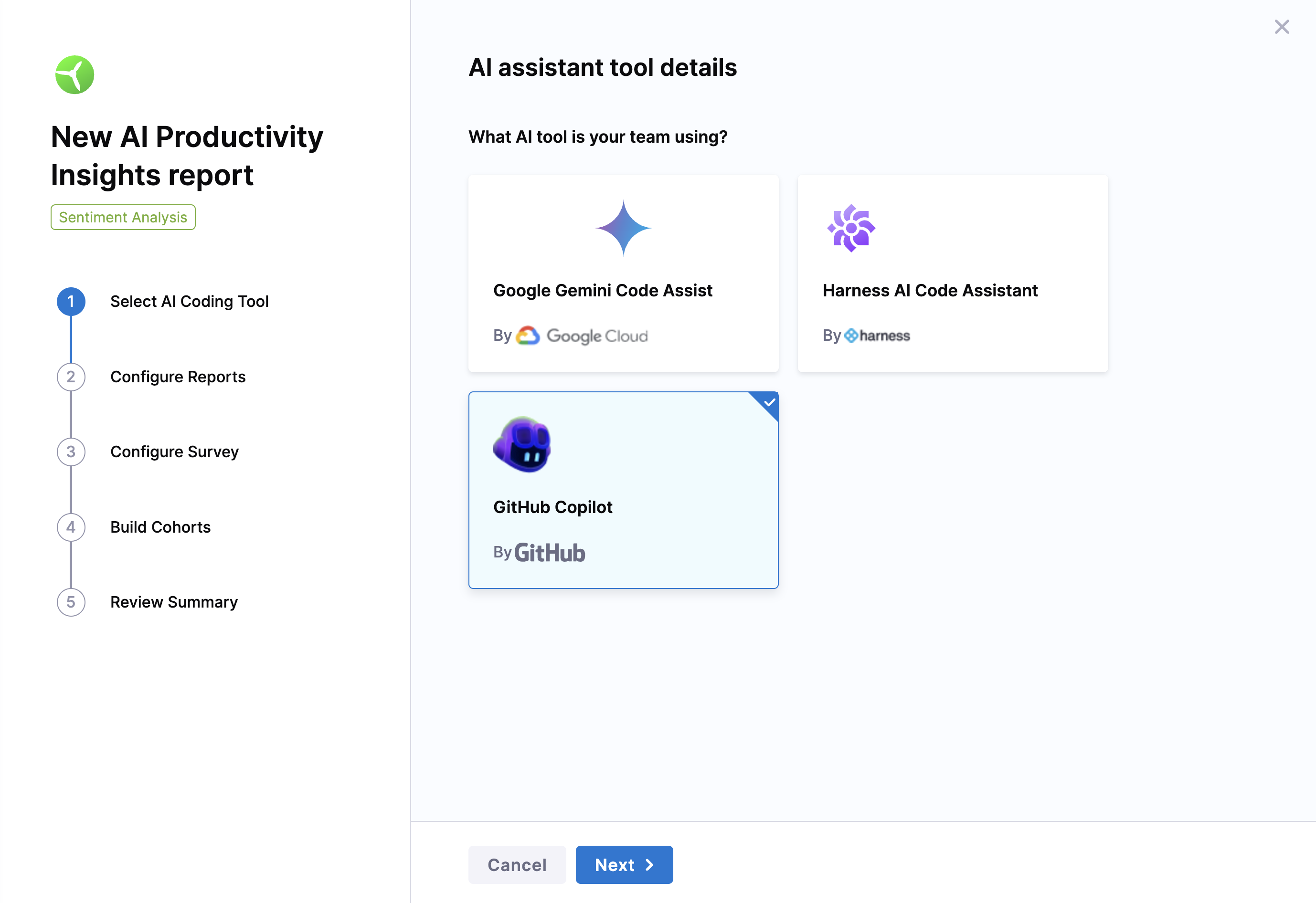 • Quick feedback loops: When you need to quickly assess how AI tools are impacting your developers' experience and performance.