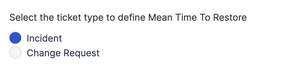 • You can alternatively select Change Requests, though this is not recommended for MTTR tracking.