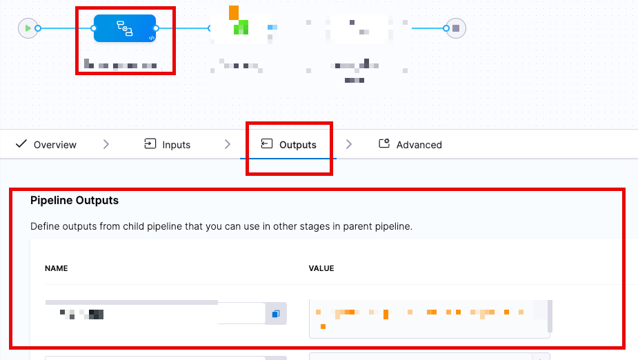 Once the variable is defined, the subsequent stages can utilize the output variable from a previous stage in a chained (child) pipeline.